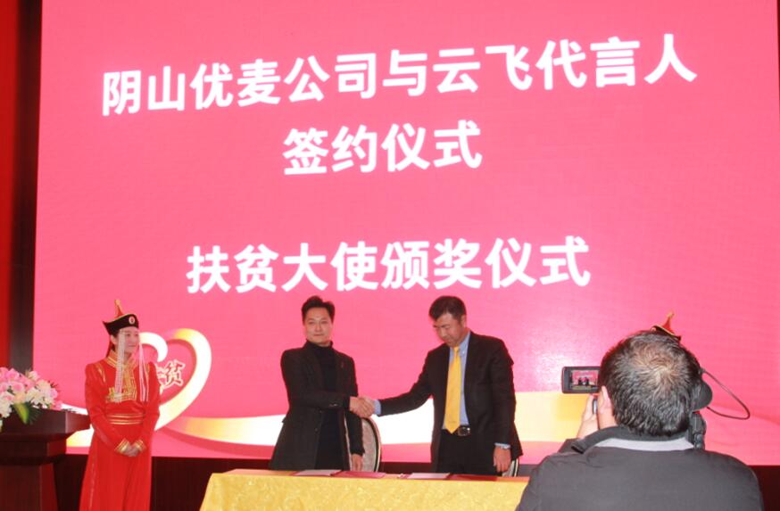 內(nèi)蒙古陰山優(yōu)麥?zhǔn)称酚邢薰九c云飛簽訂品牌代言協(xié)議