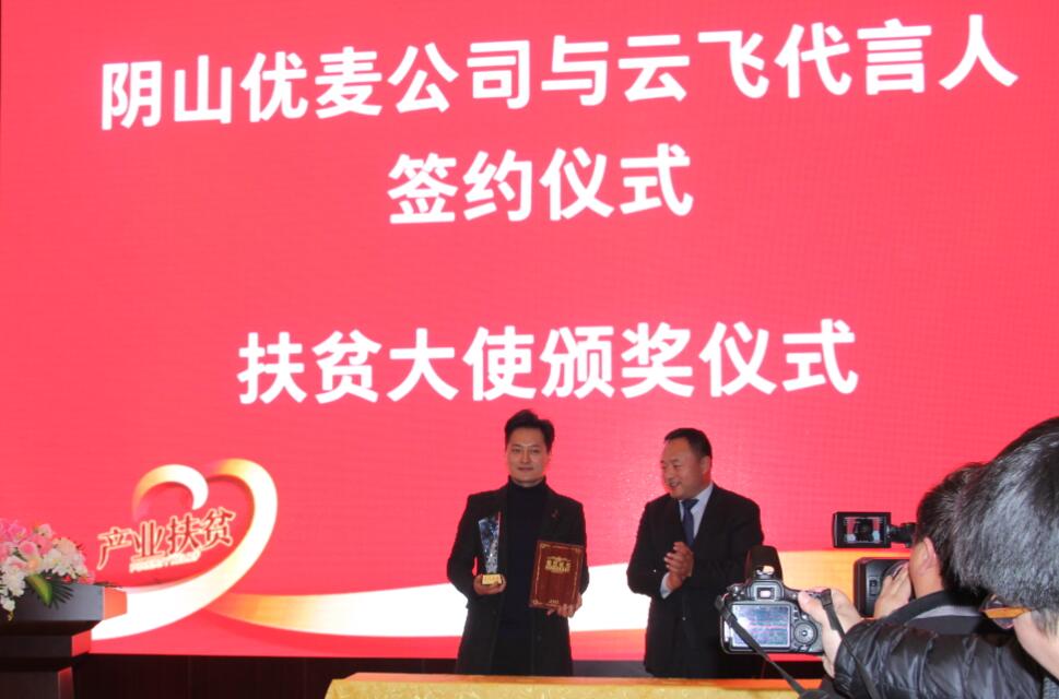 會(huì)上,陰山優(yōu)麥與云飛簽訂品牌代言協(xié)議,并由劉超旗長為云飛頒發(fā)“扶貧大使”證書和獎(jiǎng)杯,并希望他發(fā)揮號(hào)召作用,繼續(xù)助推地方特色產(chǎn)品,提升市場認(rèn)知度。云飛在發(fā)言中講到,內(nèi)蒙古的農(nóng)畜產(chǎn)品,尤其像陰山優(yōu)麥這種地方特色產(chǎn)品深受社會(huì)各界的喜愛。同時(shí)表示,作為公司的代言人,日后定會(huì)為產(chǎn)品的宣傳推廣作出積極的努力。