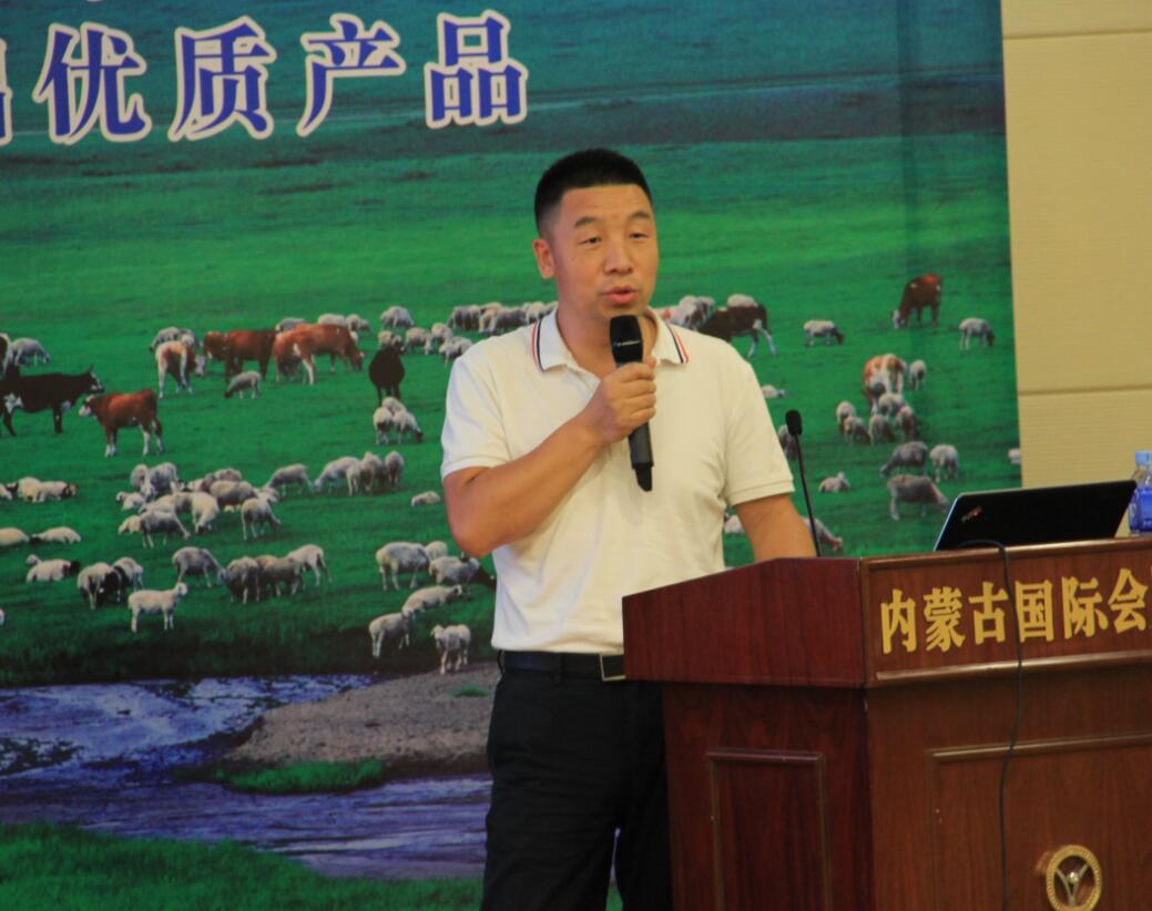 內(nèi)蒙古農(nóng)牧業(yè)產(chǎn)業(yè)化龍頭企業(yè)協(xié)會會長、蒙羊牧業(yè)股份有限公司副董事長閆樹春作《深耕產(chǎn)業(yè)鏈,做強肉羊產(chǎn)業(yè)品牌》的報告