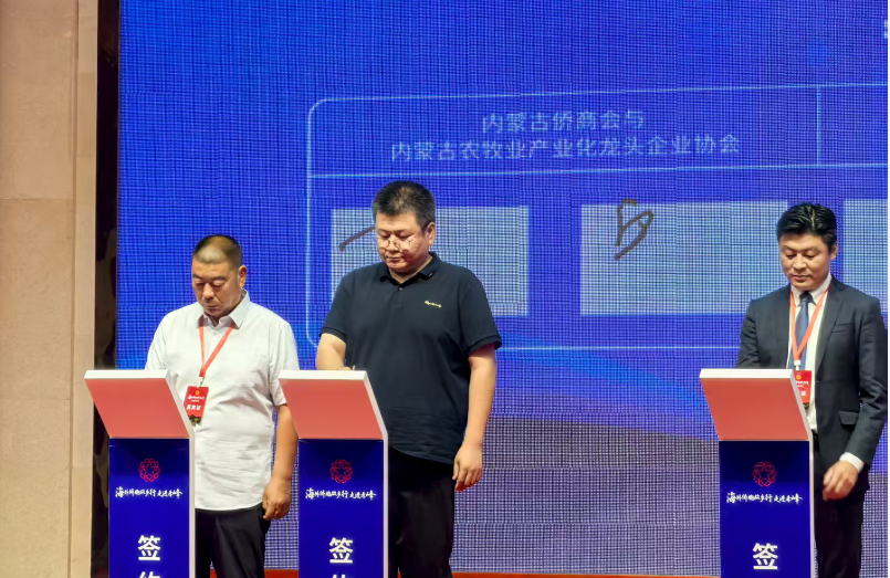 儀式現(xiàn)場還舉行了內(nèi)蒙古僑聯(lián)海外委員聘書頒發(fā)儀式和簽約儀式,內(nèi)蒙古農(nóng)牧業(yè)產(chǎn)業(yè)化龍頭企業(yè)協(xié)會副會長單位赤峰東榮羊絨制品有限公司代表協(xié)會進(jìn)行簽約。
